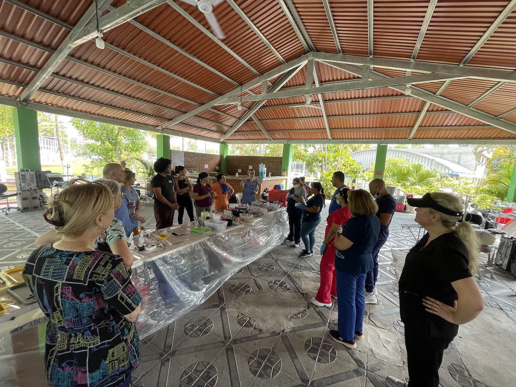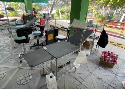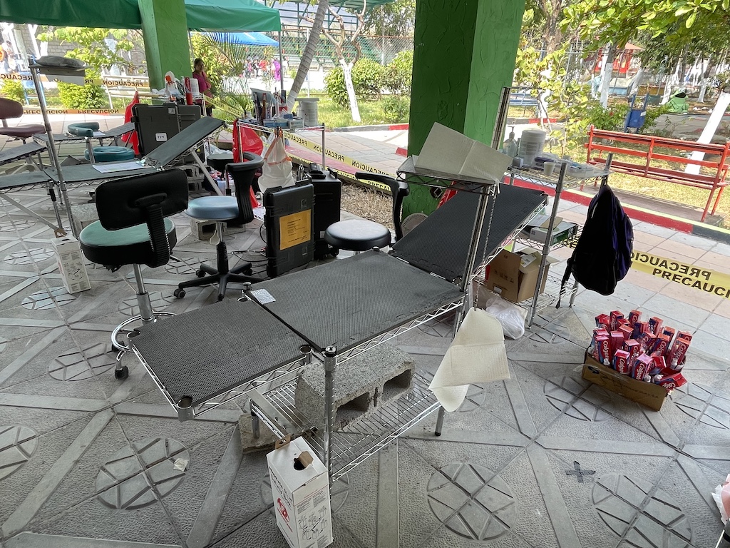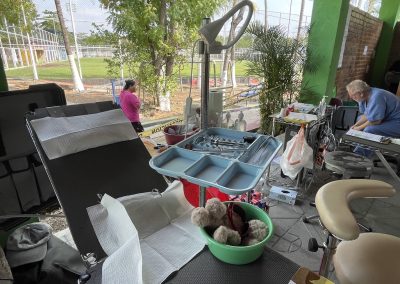 Most of our equipment is now stored in Santa Catarina Mita, so when the early team arrives, they arrange for it to be delivered to the sports center. When the U.S. team arrives in Catocha the day before Dental Week begins, they set up the clinic that Sunday afternoon, cleaning and arranging all the equipment in storage and setting up the supplies brought down each year.